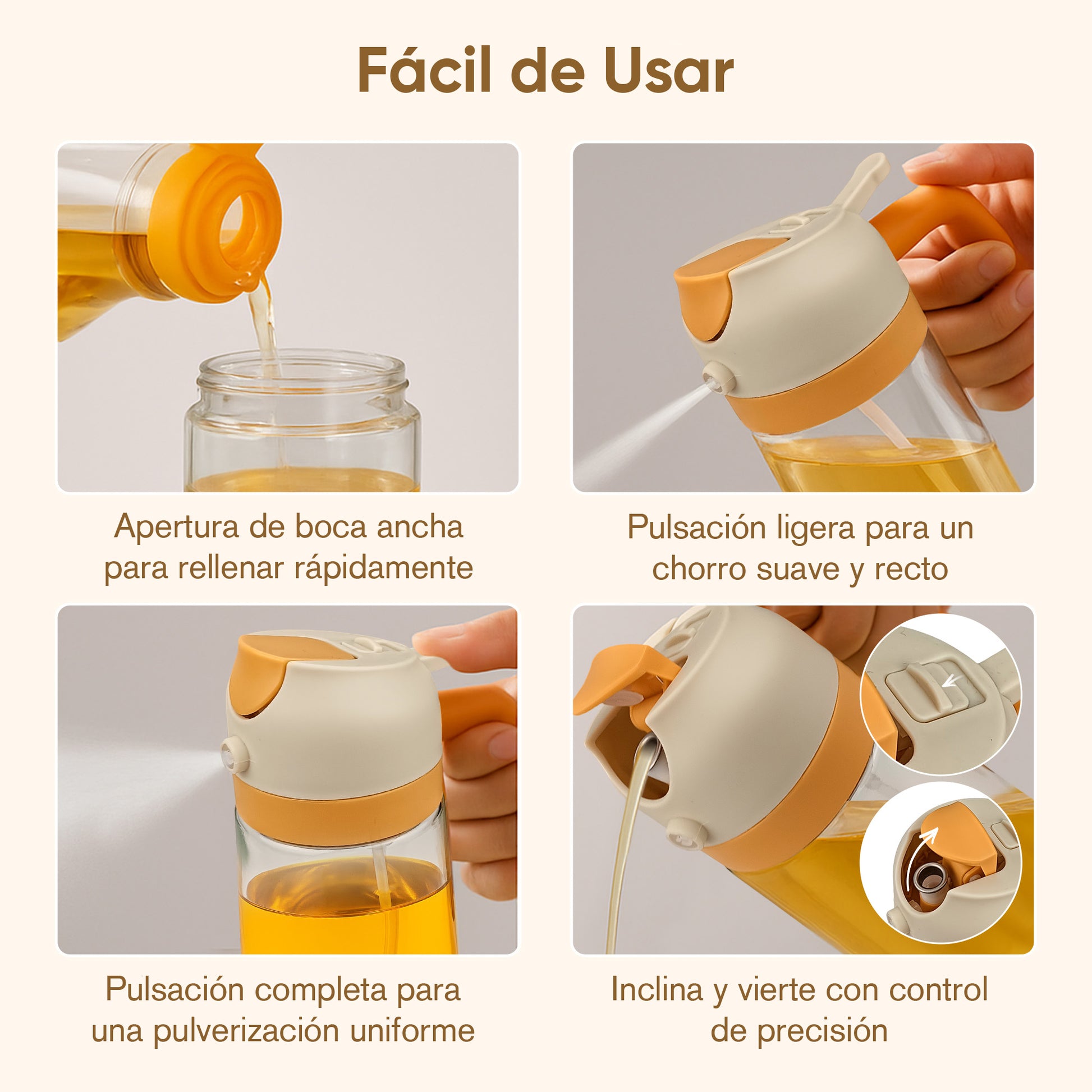 - Adatto per olio d’oliva, aceto e altri liquidi. Ideale per la cucina di tutti i giorni e ricette più salutari.